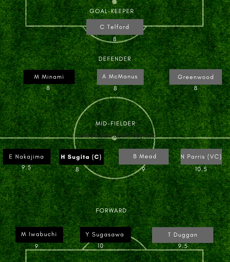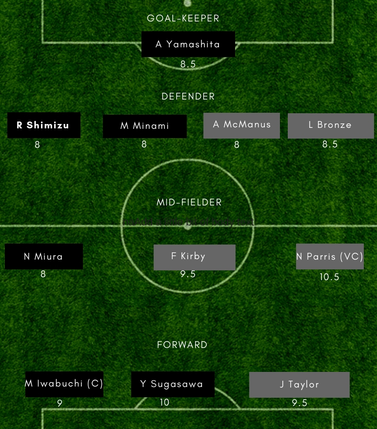 Yuika Sugasawa – 13.5 Jodie Taylor – 11 Ellen White – 12.5 Mana Iwabuchi – 12.5 Francesca Kirkby – 18 Narumi Miura- 11.5 Stephanie Houghton – 15 Saki Kumagai – 15.5