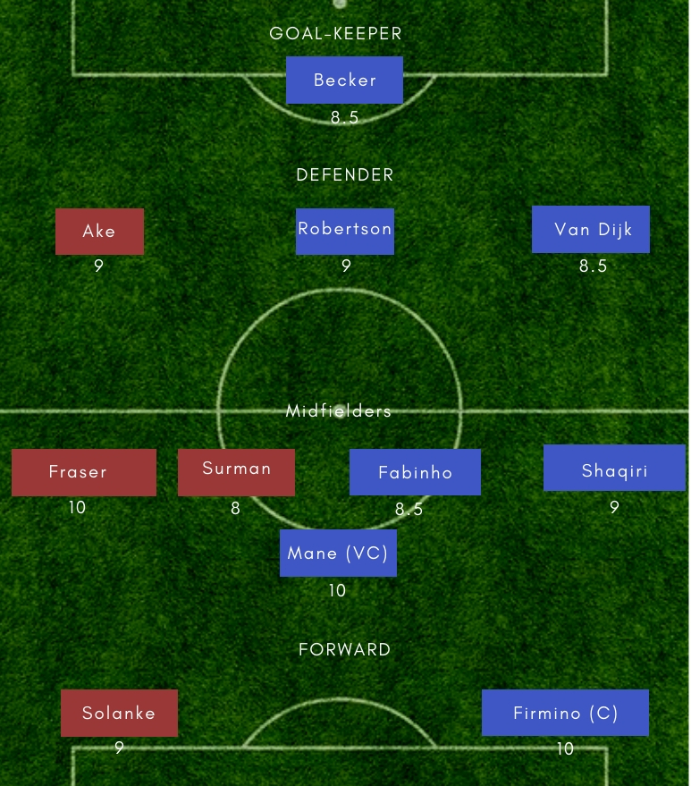 LIV vs BOU Dream11 Playing 11 – (Probable) – Liverpool– Allison (GK), Milner, Matip, Van Dijk, Robertson, Keita, Fabinho, Shaqiri, Salah, Mane, Firmino Bournemouth– Boruc (GK), Smith, Cook, Ake, Daniels, Stanislas, Lerma, Gosling, Surman, Fraser, King