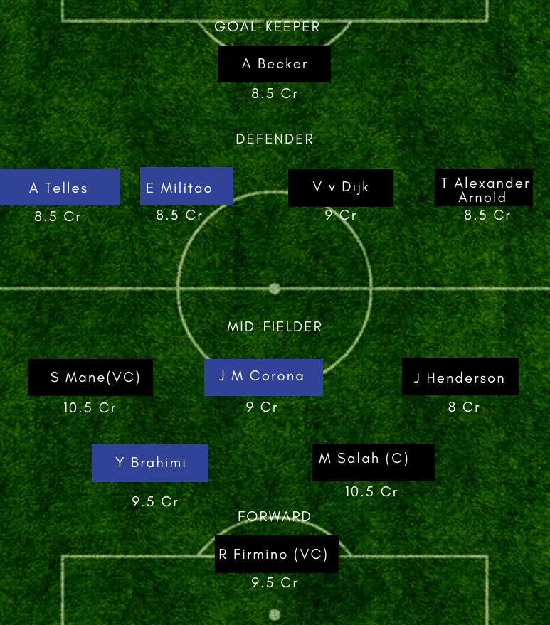 Liverpool – Alisson, Alexander-Arnold, Matip, Van Dijk, Milner, Fabinho, Henderson, Keita, Salah, Firmino, Mane