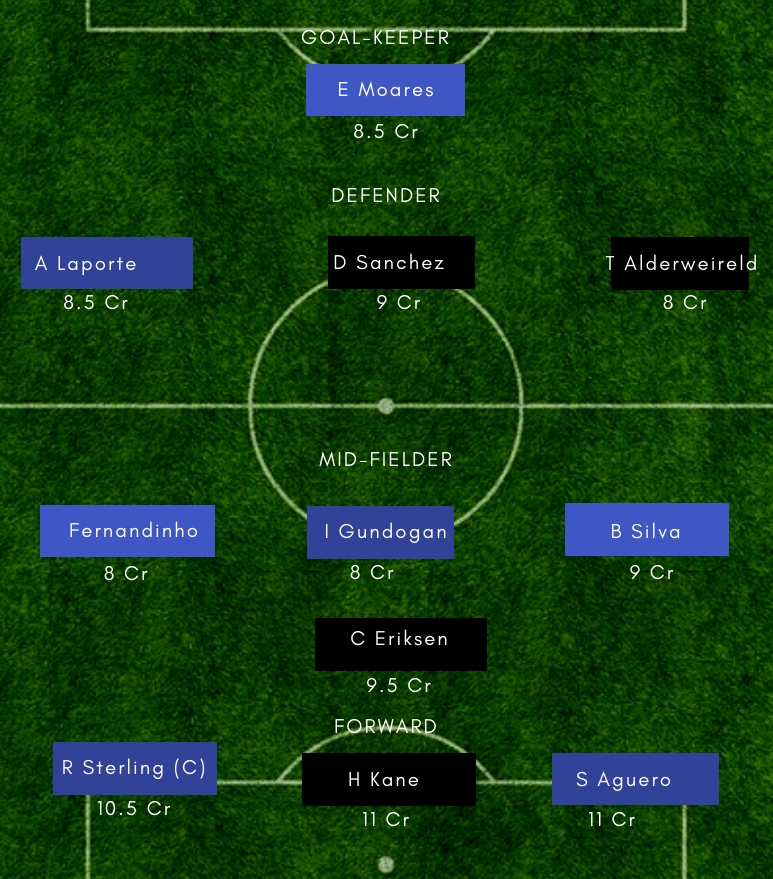 Manchester City – Ederson, Danilo, Otamendi, Stones, Laporte, Gundogan, Fernandinho, De Bruyne, Bernardo, Sterling, Aguero
