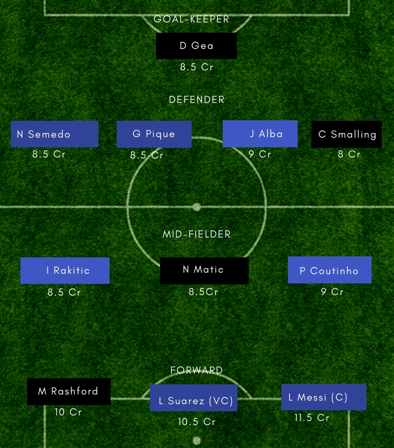 Barcelona – Ter Stegen; Semedo, Pique, Lenglet, Alba; Busquets, Rakitic, Arthur; Messi, Suarez, Dembele