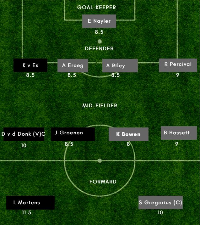 Probable XI: Nayler (GK), Green, Erceg, Stott, Percival, Olivia Chance, A Longo, A Riley, K Bowen, S Gregorius, H Wilkinson