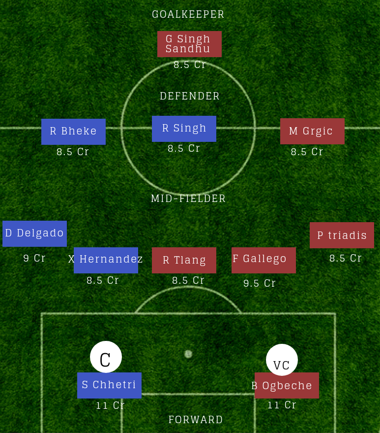 Gurpreet Singh Sandhu, Rahul Bheke, Juanan, Albert Serran, Nishu Kumar, Harmnajot Khabra, Dimas Delgado, Udanta Singh, Xisco Hernandez, Sunil Chhetri, Miku