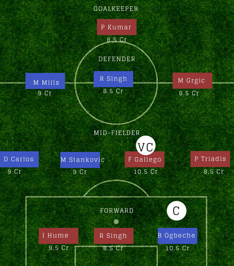F Gallego : मिडफील्डर गैलेगो के नाम इस सीजन चार गोल और चार असिस्ट दर्ज है. ऐसे में आप इन्हें उपकप्तान बना सकते हैं.