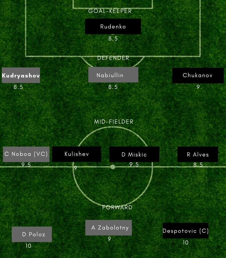 Rudenko (GK), Sivakov, Shakhov, Kozlov, Kulishev, Afonin, Miskic, Ricardo Alves, Terekhov, Fameyeh, Despotovic