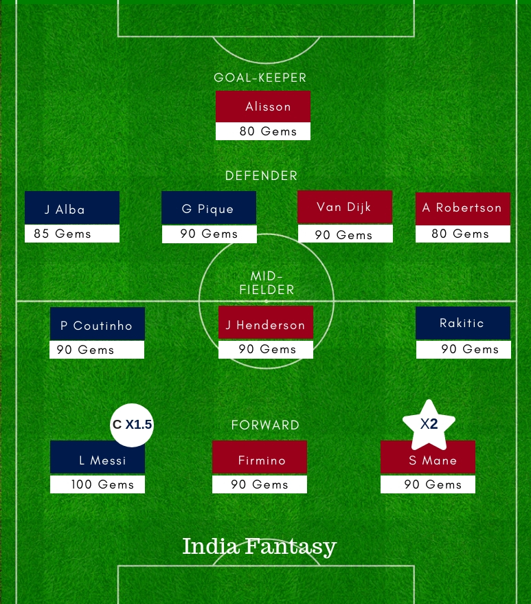 Barcelona vs Liverpool Playerzpot Fantasy Team