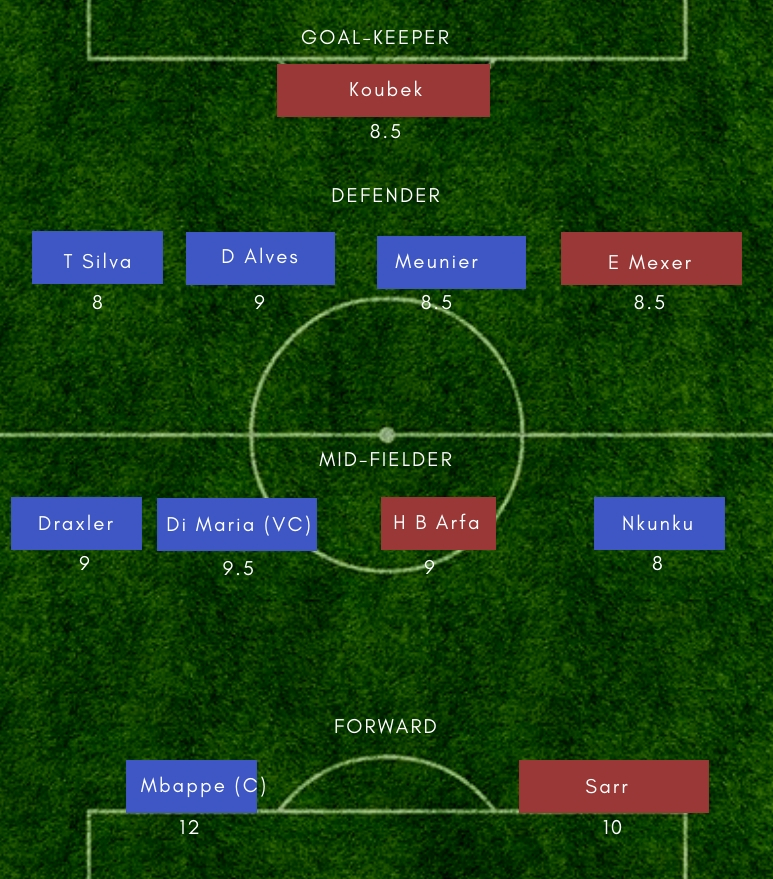PSG vs REN Dream11 Playing 11 – (Probable) – Paris Saint-Germain– Areola / Buffon (GK), Kurzawa, Silva, Kehrer, Meunier, Draxler, Marquinhos, Maria, Mbappe, Diaby, Cavani Stade Rennais– Koubek (GK), Traore, Gelin, Mexer, Zeffane, Grenier, Andre, Bourigeaud, Castillo, Arfa, Sarr