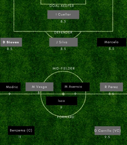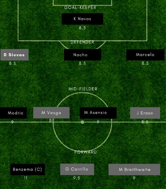RM vs LEG Dream11 Playing 11 – (Probable) – Leganes– Cuellar (GK), Tarin, Siovas, Bustinza; Nyom, Perez, Vesga, Silva; Eraso; Braithwaite, Carrillo Real Madrid– Navas (GK), Odriozola, Varane, Nacho, Reguilon; Modric, Casemiro, Kroos; Bale, Benzema, Asensio