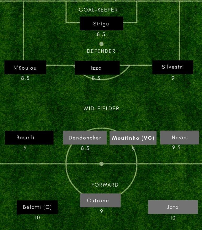 • The hosts’ attacking threat, especially at home, means, Dream11 players should opt for the likes of Belotti and Zaza in their team while going with Joao Moutinho and Leander Dendoncker from Wolves.