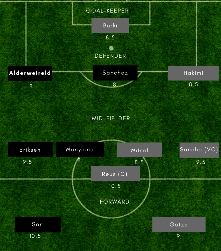 TOT vs DOR Dream11 Playing 11 – (Probable) – Borussia Dortmund– Bürki (GK), Hakimi, Akanji, Zagadou, Diallo, Witsel, Delaney, Sancho, Reus, Guerreiro, Götze Tottenham Hotspur– Lloris (GK), Foyth, Sanchez, Alderweireld, Aurier, Sissoko, Winks, Vertonghen, Eriksen, Son, Kane