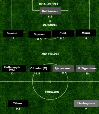 Turkey: Gunok (GK), Celik, Demiral, Soyuncu, Meras, Yokuslu, Belozoglu, Tekdemir, Calhanoglu, Tosun, Yilmaz