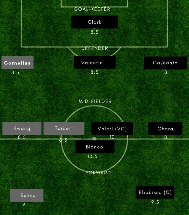 Maxime Crepeau (GK), Jakob Nerwinski, Erik Godoy, Derek Cornelius, Ali Adnan, Felipe, Hwang In-Beom, Russell Teibert, Fredy Montero, Thelonius Bair, Joaquin Ardaiz