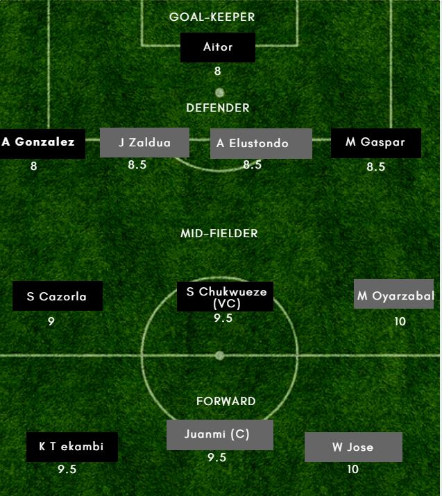 Note: Theo Hernandez was passed fit for the match and should feature at left-back. While Raul Navas is expected to replace Diego Llorente at the back, playing alongside Aritz Elustondo. Key Players – Willian Jose, Mikel Oyarzabal