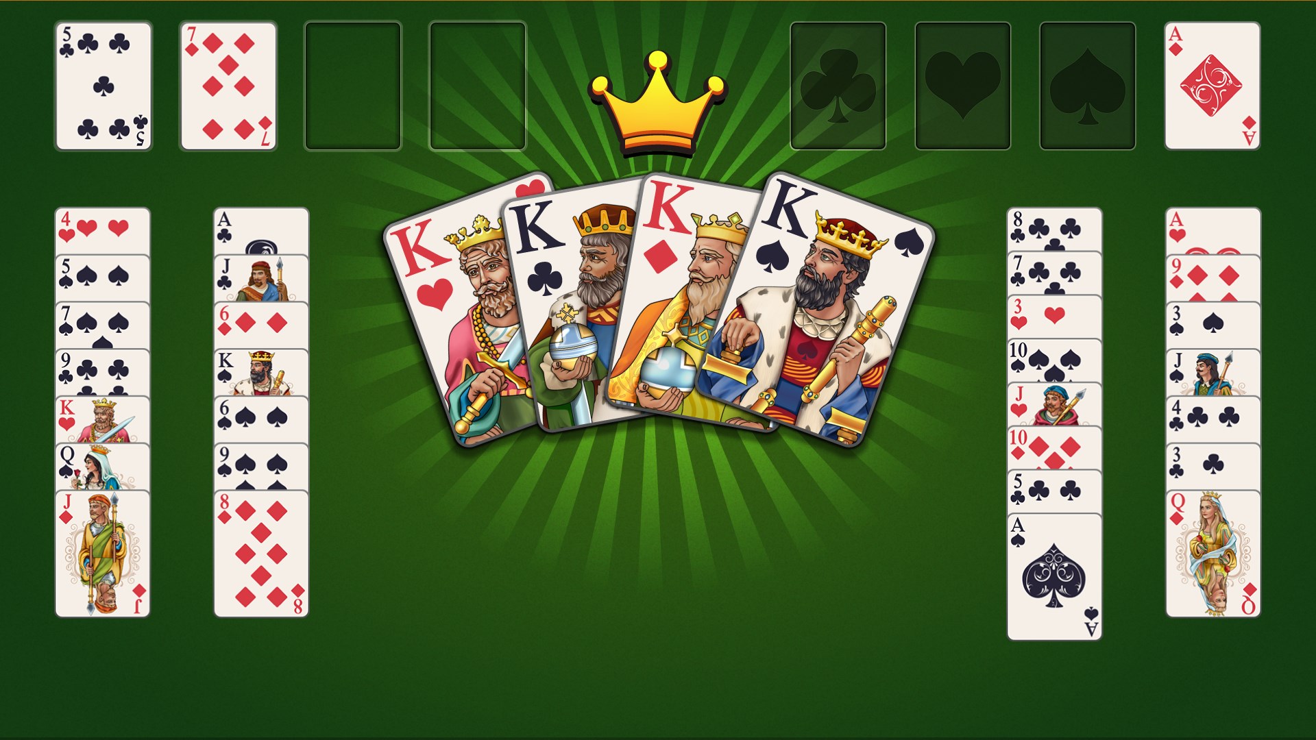 To the basic solitaire card game format, FreeCell Solitaire adds a new element of strategy and puzzles. As you use the four free cell locations as placeholders to solve the problem of moving cards, plan and strategize each step.