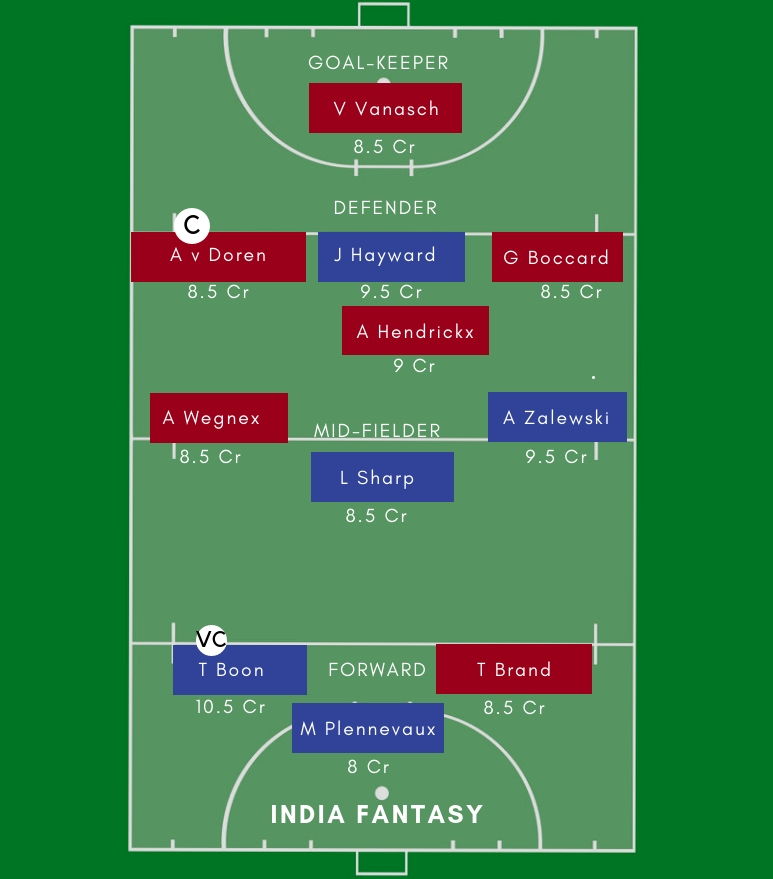 Belgium fantasy picks: Tom Boon, Cedric Charlier, Max Plennevaux, Florent Van Aubel, Victor Wegnez, Felix Denayer, Loic Van Doren, Gauthier Boccard, Loick Luypaert, Alexander Hendrickx