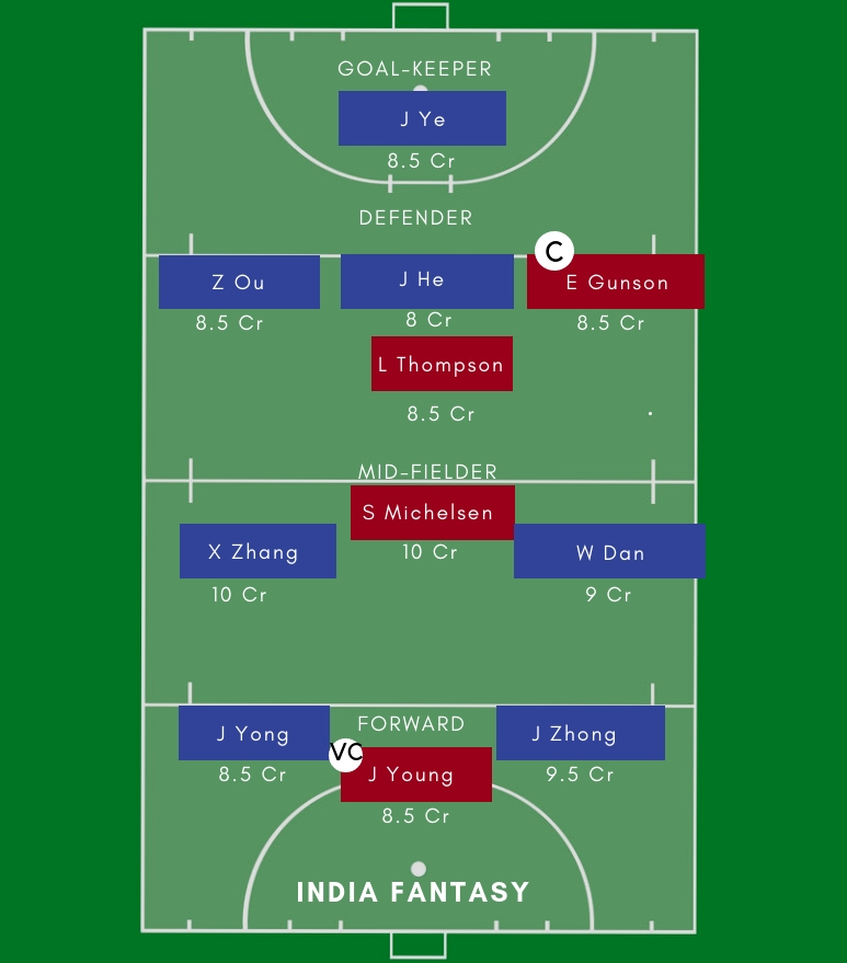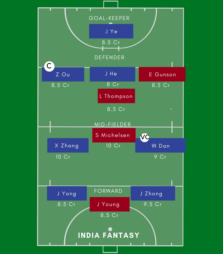 China Women Hockey squad: GU Bingfeng, CUI Qiuxia (c), XU Wenyu, LIANG Meiyu, LI Hong, ZHANG Jinrong, OU Zixia, ZHANG Xiaoxue, HE Jiangxin, WANG Na and YE Jiao (GK)