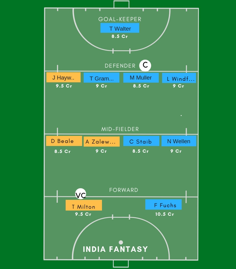 Germany fantasy picks: Walter Tobias, Grambusch Tom, Muller Mathias, L Windfeder, C Staib, Wellen Niklas and Fuchs Florian