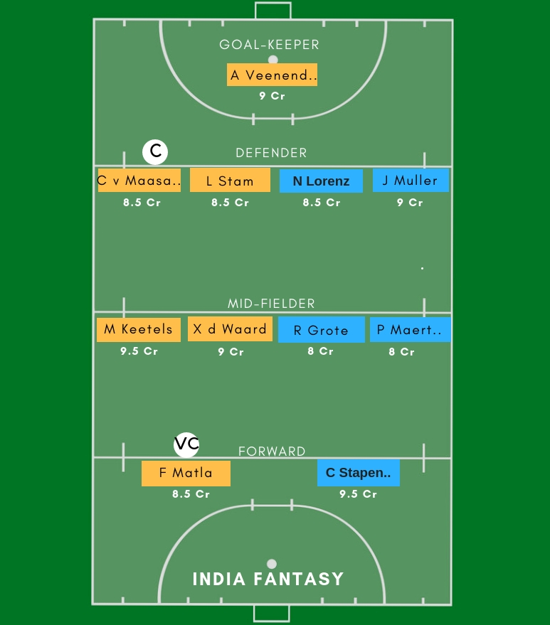 Netherlands Women fantasy picks: A Veenendaal, Caia Van Maasakker, L Stam, M Keetels, Xan De Waard and  Frederique Matla