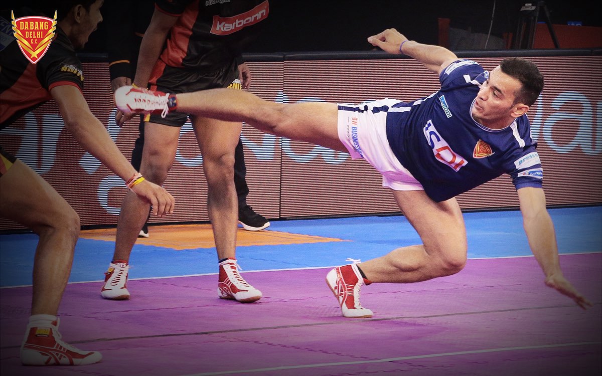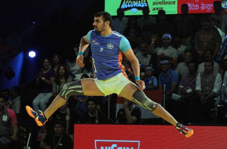 At mat, Pardeep is the most ferocious raider in India. He is commonly known as Raid Machine.