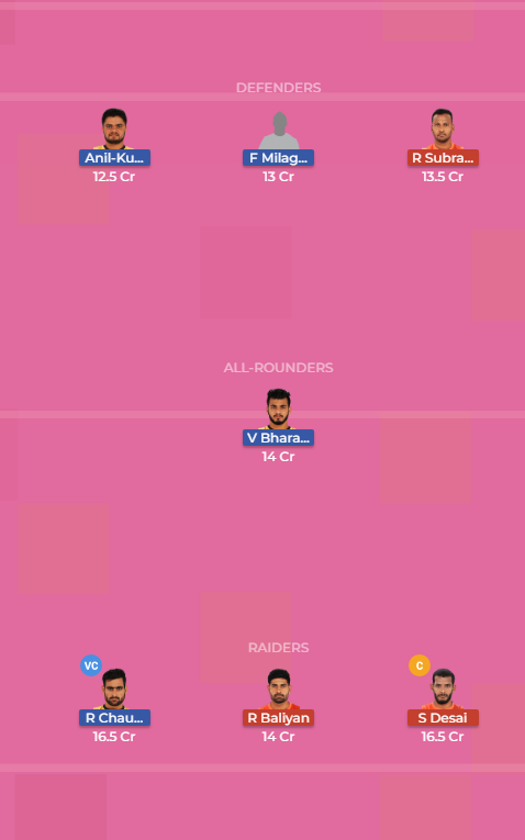Defenders – डिफेंडर के तौर पर Fazel Atrachali, Abozar Mohajermighani, Rajguru Subramanian अच्छे विकल्प हो सकते है। Fazel का प्रदर्शन इस सीजन कमाल का रहा है, वो डिफेंडर में बेस्ट चॉइस रहेंगें। वही Abozar ने भी कुछ अच्छे टैंकल पॉइंट टीम को दिला सकते है।