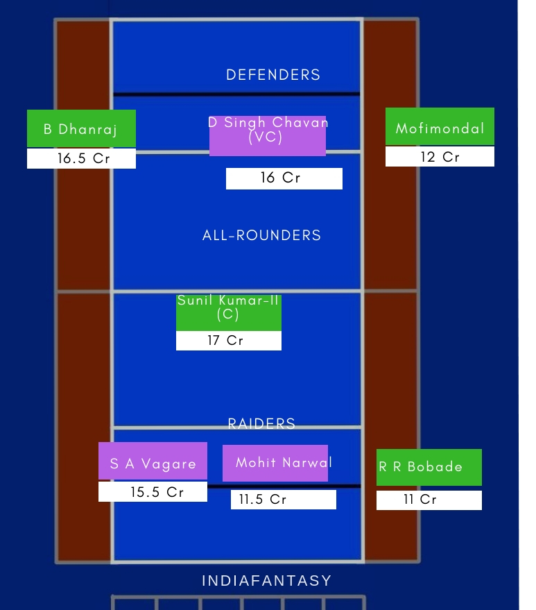 All-rounder– ऑलराउंडर के तौर पर Rashid Shaikh, Sunil Kumar-II सबसे अच्छे विकल्प होंगे। Suni Kumar-II ने तेलुगु के खिलाफ मैच में शानदार 19 पॉइंटस हासिल किए थे। जबकि Rashid Shaikh ने भी इस सीजन रेड और डिफेंस दोनों में अच्छे पॉइंट लिए है।
