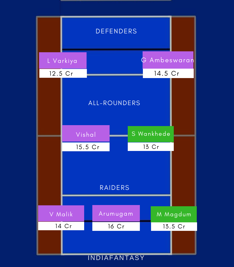 • Shashank Wankhede returned with 4 tackle points in the last game and he looks likely to keep his place.