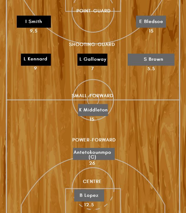 Khris Middleton – The 2018-19 season gave a career-best return for him and he is showing no signs of slowing down. In the last 10 matches, the 27-year-old has racked up points at 22 per game, making 1.3 steals per game. Against Detroit Pistons, he ava=erages 19.7 points per game.