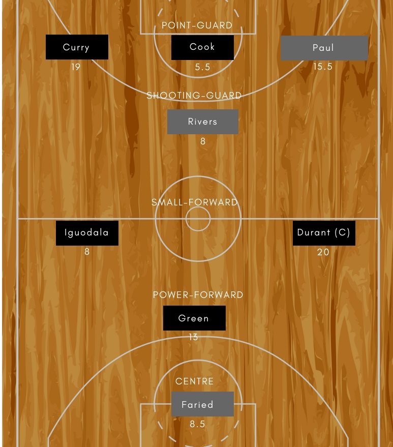 Golden State Warriors: Stephen Curry –Perhaps the best shooter of the ball from beyond the arc, Stephen Curry is once in a generation kind of player. He is a good dribbler, has an incredible eye for a pass, and comes big in big games. The 30-year-old is scoring points at 28.8 per game.