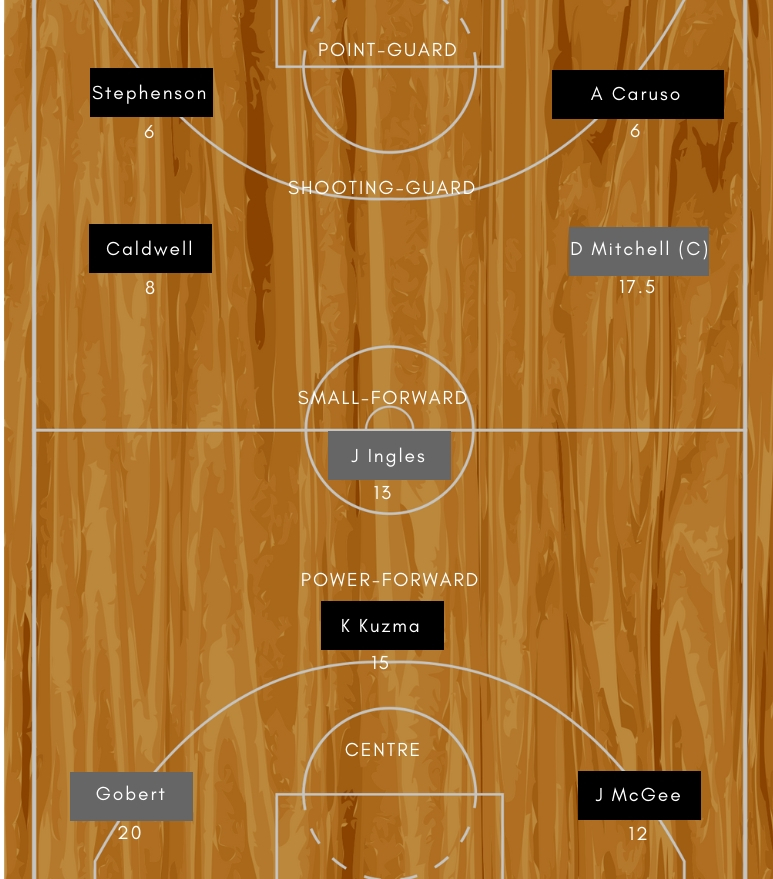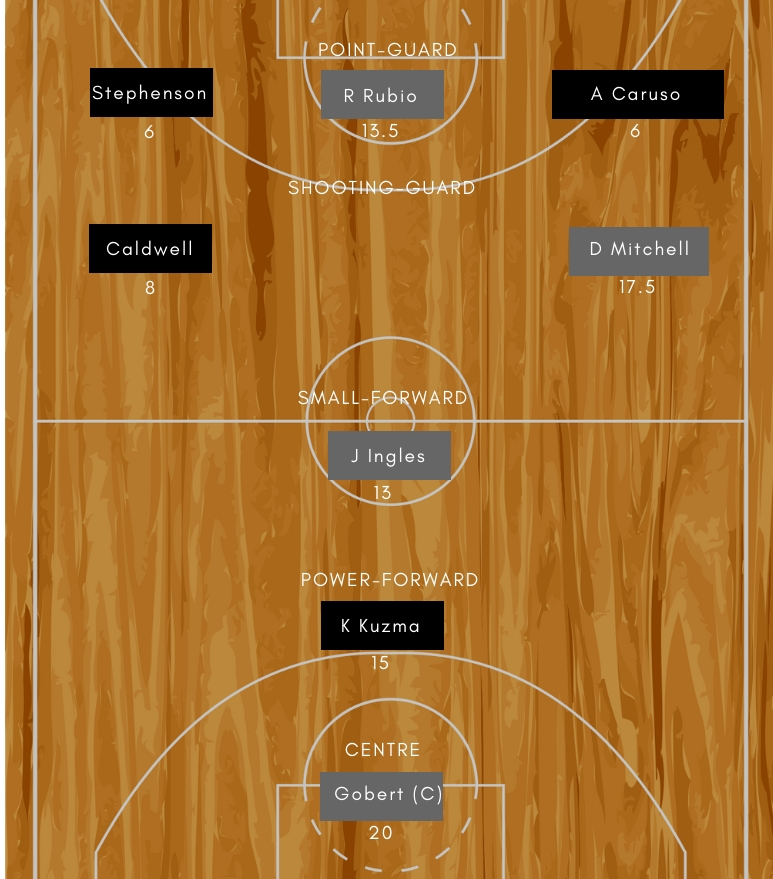• Utah Jazz: Joe Ingles (F), Derrick Favors (F), Rudy Gobert (C), Donovan Micthell (G), Ricky Rubio (G)