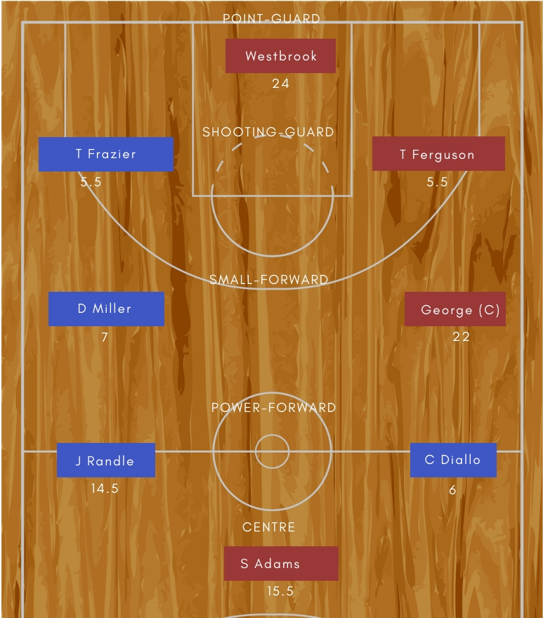 Oklahoma City Thunder: Paul George – The form he is in at the moment, and the number of points he is racking up, he is a serious candidate for the NBA MVP award. There is only one player who can match his stats in the last 10 games or so, and he is James Harden. So you can see how potent George is these days and is averaging 37 points per game in the last 10 matches.