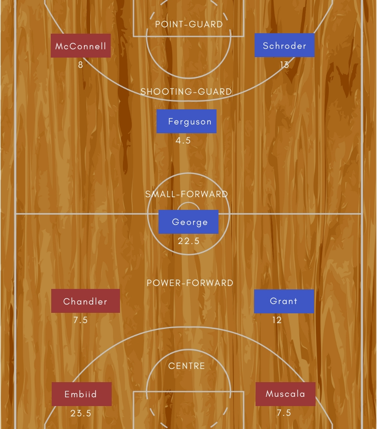 Regular Season Record- Philadelphia 76ers: W-30, L-16 Oklahoma City Thunder: W-20, L-18