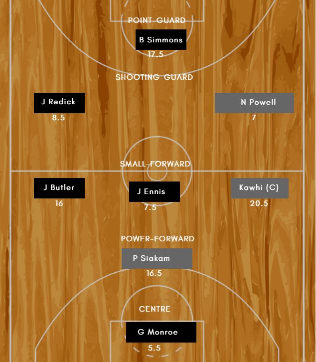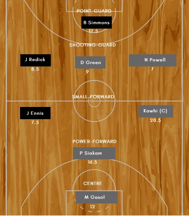 Ben Simmons – Sixers man for all occassion. He has failed to brin his offesnive game in this series. Part of that due to the job he has been asked to do on Kawhi Leonard.