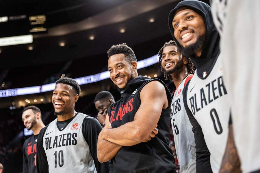 Portland Trailblazers Squad: Larry Nance Jr., Tony Snell, Norman Powell, CJ McCollum, Damian Lillard, Jusuf Nurkic, Ben McLemore, Robert Covington, Anfernee Simmons, TJ Leaf, Rondae Hollis-Jefferson, Dennis Smith Jr., CJ Elleby, Patrick Patterson, Nasir Little, Keljin Blevins, Greg Brown III, Cody Zeller, Trendon Watford, Quin Cook, Marquesse Chriss.