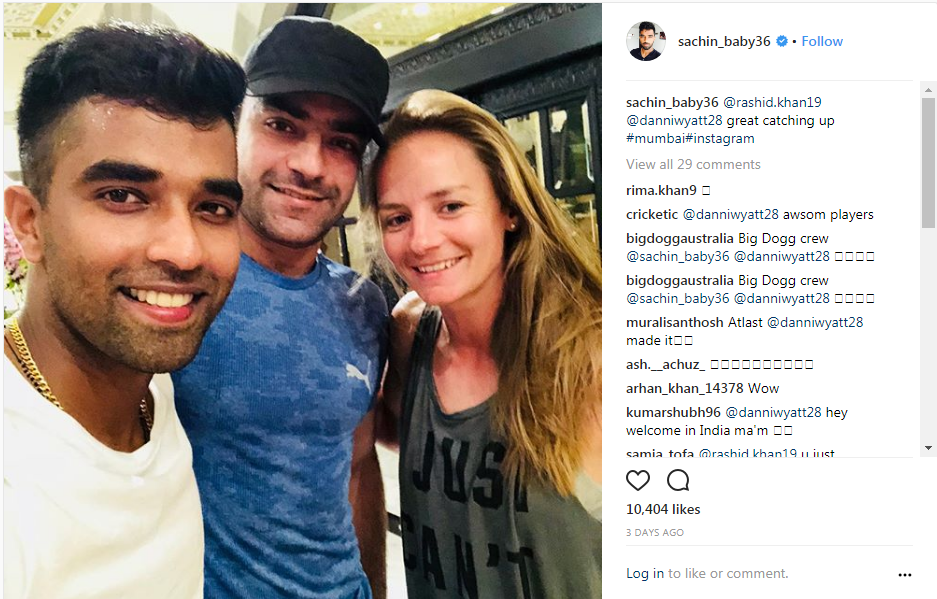 A few days back some news made rounds when Afghanistan’s star leggy Rashid Khan made headlines after he met England’s women’s cricketer Danielle Wyattt after having a few Twitter conversations between them. They were seen in a picture alongside Sachin Baby who is Rashid’s teammate from Sunrisers Hyderabad.