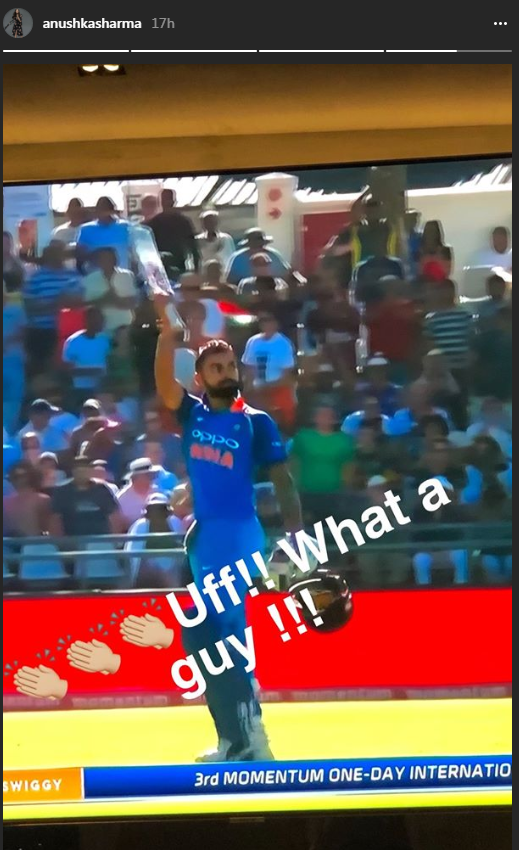 His Wife, Indian Actress Anushka Sharma also shared an Insta story after Virat scored his 34th ODI ton.