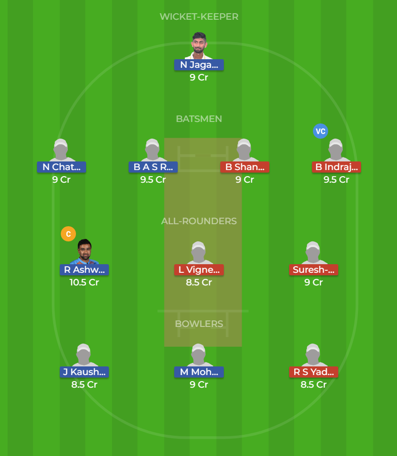 Ravichandran Ashwin (retained player) is available for the first part of the tournament before the international duty with Indian Cricket Team. After Ashwin leaves, N Jagadeesan will lead Dindigul Dragons.