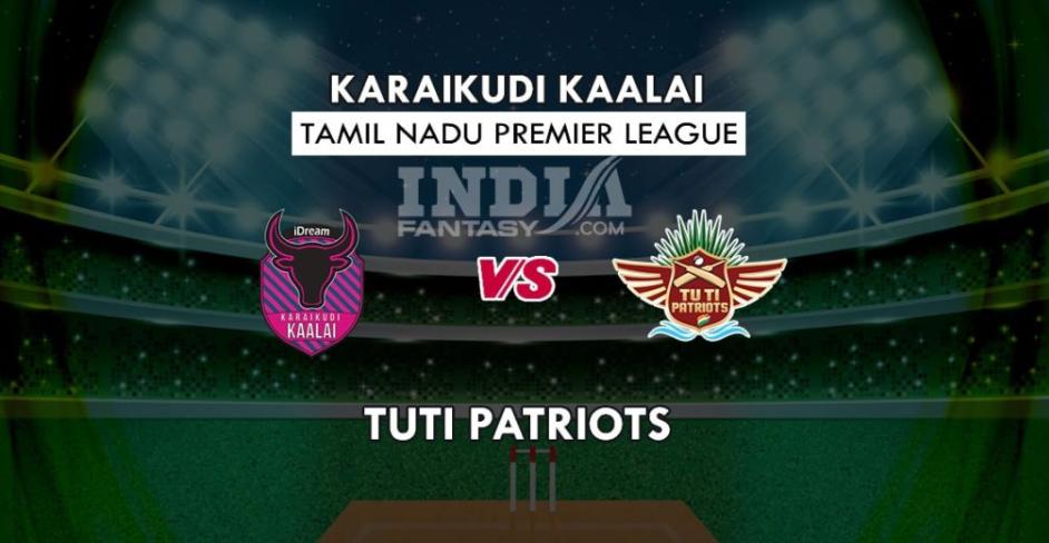 इस समय Karaikudi kalai की टीम 6 मे से 4 मुकाबले जीत कर पॉइंट टेबल में तीसरे स्थान पर है। पांचवें स्थान की टीम TUTI Patriots की टीम से जब Karaikudi की टीम टकराएगी तो इसकी कोशिश इस मैच में जीत हासिल कर अपनी स्तिथि पॉइंट टेबल में और मज़बूत करने की होगी ।