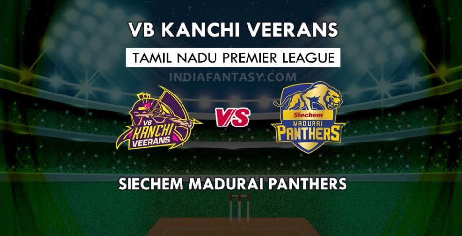 तमिल नाडु T20 प्रीमियर लीग में बुधवार को खेले जाने वाले मुकाबले में Madurai Panthers और VB Kanchi Veerans की टीम से डिंडीगुल के NPR कॉलेज ग्राउंड पर भिड़ेगी। इस मुकाबले में Madurai Panthers की टीम VB Kanchi Veerans की टीम से भिड़ेगी तो Panthers की सीधी नज़र लगातार अपनी तीसरी जीत दर्ज करने पर होगा वहीं VB Kanchi Veerans की टीम जिसे अब भी अपनी पहली जीत की तलाश है,वह हर हाल में जीत दर्ज करने की कोशिश करेगा।